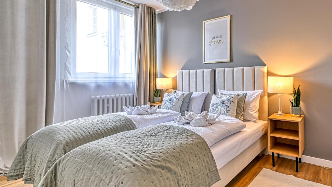 Apartament z 2 sypialniami. This apartment comprises 1 living room, 2 separate bedrooms and 1 bathroom with a shower and a hairdryer. In the well-equipped kitchenette, guests will find a stovetop, a refrigerator, a dishwasher and kitchenware. The apartment provides a washing machine, a coffee machine, a seating area, a flat-screen TV, as well as city views. The unit offers 5 beds. Apartament - 6 osobowy. Powierzchnia pokoju ok.: 54 mkw.