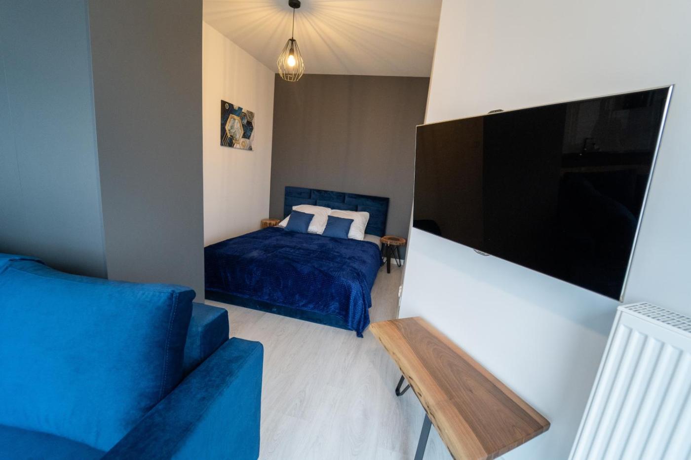 Apartament z 1 sypialnią. This air-conditioned apartment features 1 living room, 1 separate bedroom and 1 bathroom with a shower. Guests can make meals in the kitchenette that features a stovetop, a refrigerator, kitchenware and an electric kettle. The apartment features a washing machine, a seating area, a dining area, a flat-screen TV, as well as city views. The unit has 2 beds. Apartament - 4 osobowy. Powierzchnia pokoju ok.: 40 mkw.